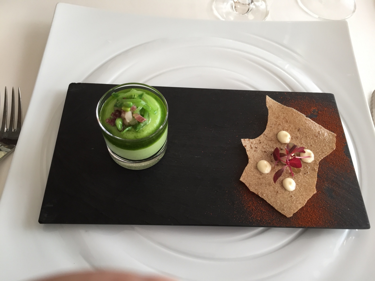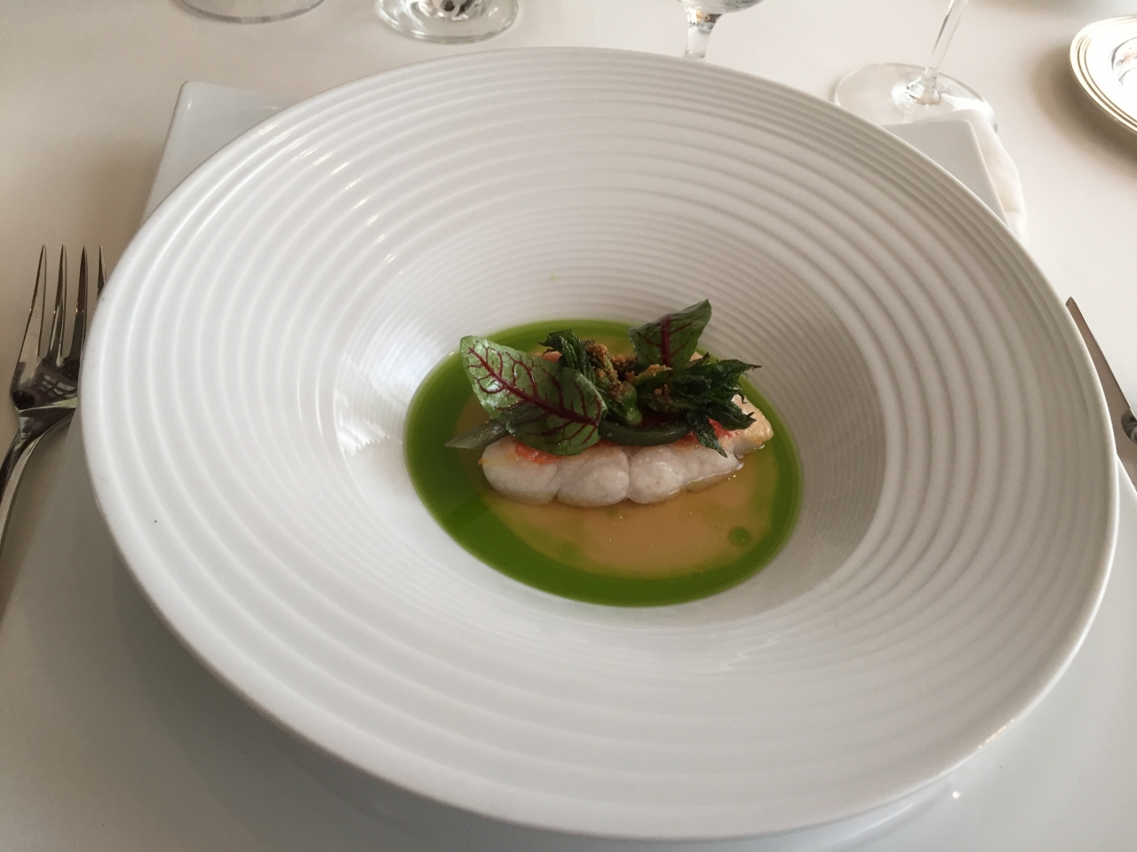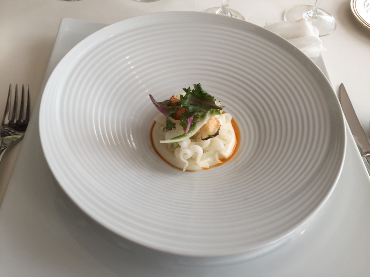 お料理はどれも目にも舌にも美味しくいただきました。スペイン料理って、パエリアや魚介、イベリコ豚くらいしか思いつかないけれど、メニューを見るとよくわからないものばかり。出てきたお料理はどれも手が込んでいて美しく、聞いたことのない食材や調理法で楽しめます。特にアオリ烏賊のタリアテッレは、イカとソースが絶妙でとても美味しくいただきました。