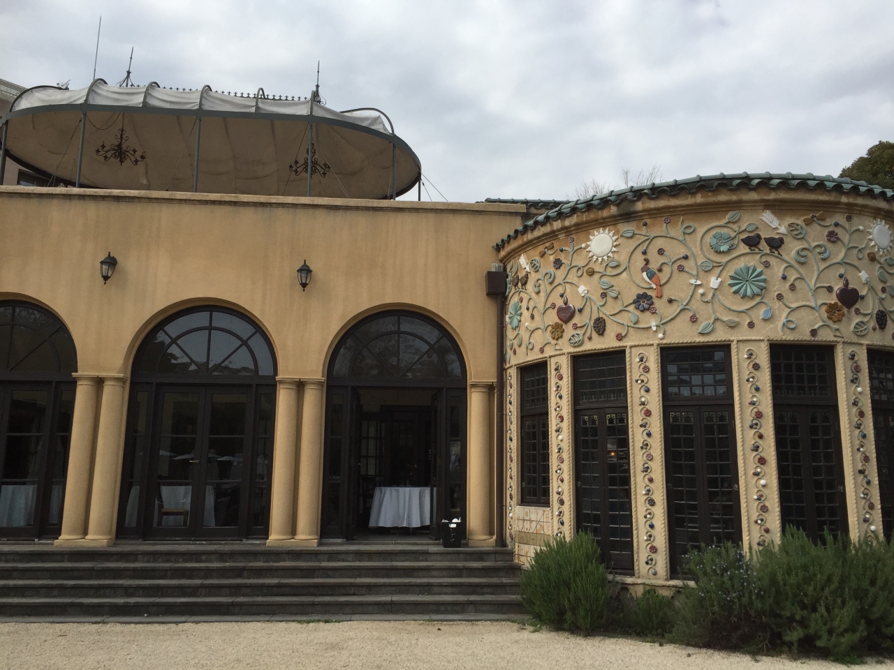 食後は館内ツアーもあり、こちらも楽しめました。昭和2年完成の伯爵の本邸を、ガイド付きで見せていただけます。建物も内装も家具調度品も全てが芸術品のようです。戦争等で損失したものも多いようですが、大テーブルやステンドグラス、ランプシェードなど歴史の重みを感じました。
