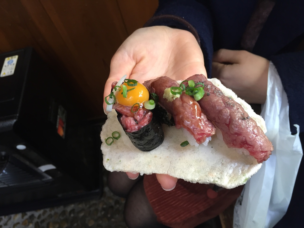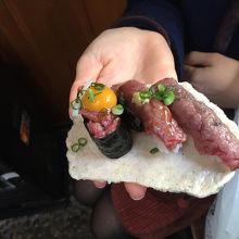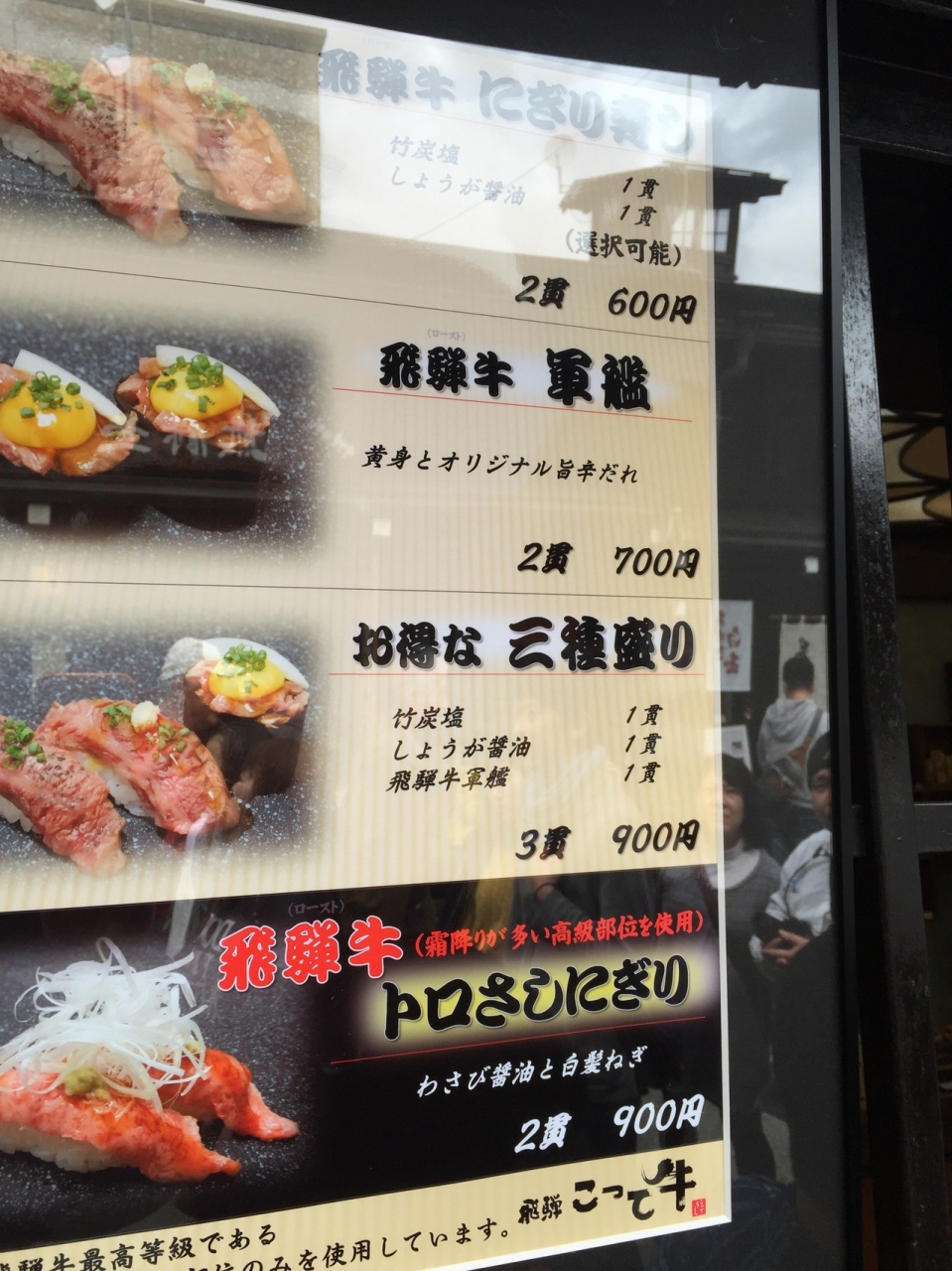 本当においしい。飛騨牛にぎり三種盛りはお勧め