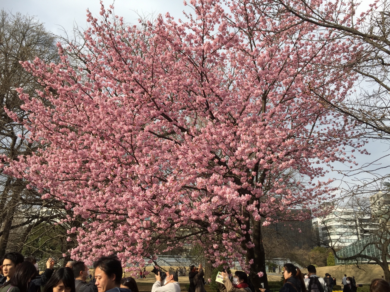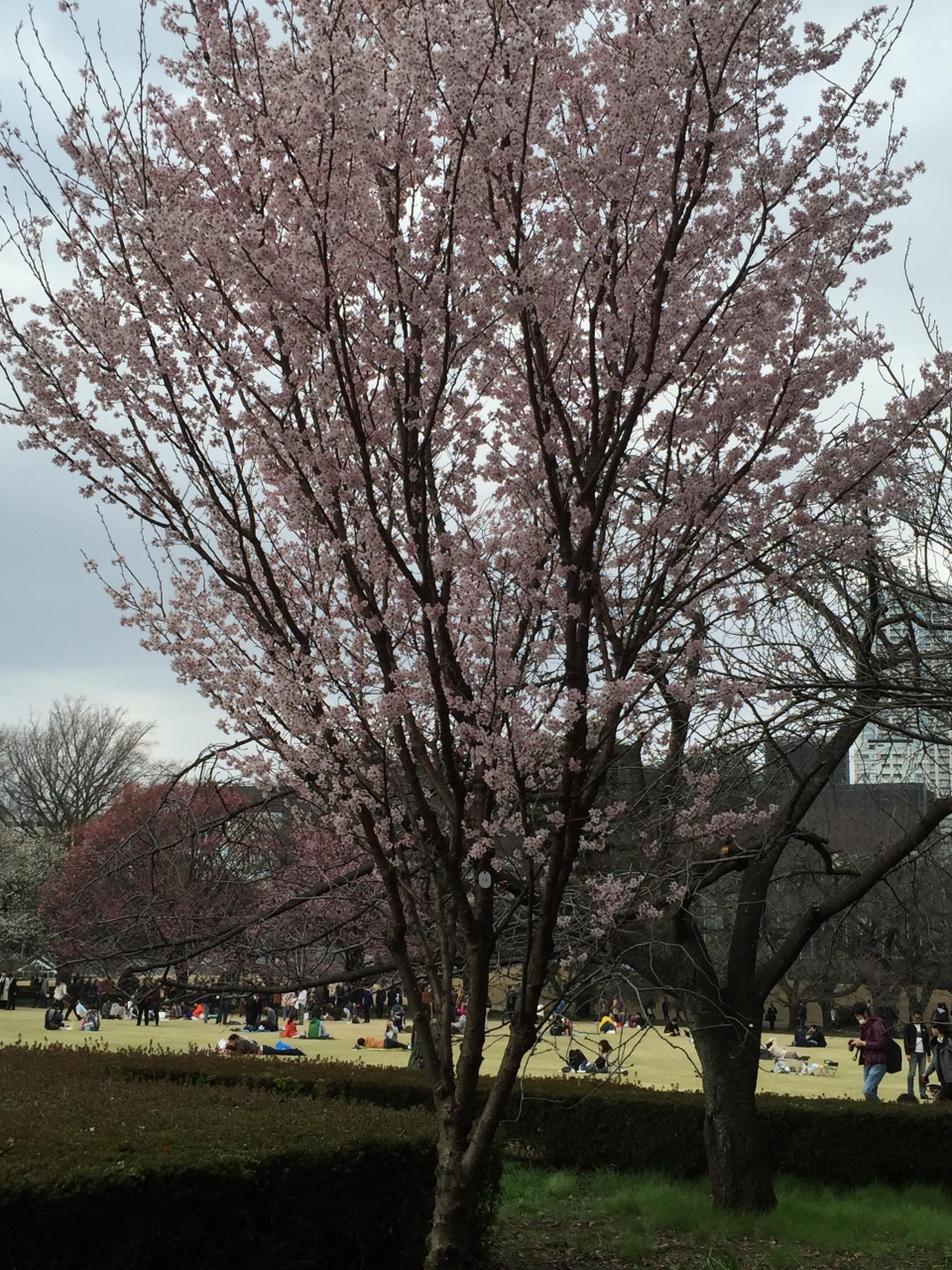 3月20日、やっと桜が咲き始めたところでお花見にはちょっと早いと思ったけれど、ついでがあったので行ってみました。日本に半世紀以上住んでいるのに何故かまだ行ったことがなかった新宿御苑。思った以上に広大な公園で、お天気も良かったのでたくさんの人が芝生にレジャーシートを広げくつろいでいました。