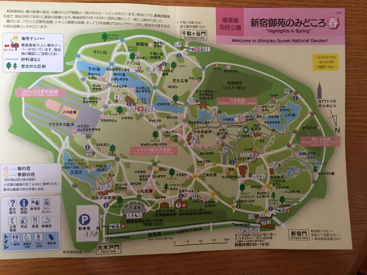 大木戸門から入ったので最初に大温室に入り、その後桜や椿の花を見ながら新宿門まで、広~い御苑のほんの一部を歩きました。