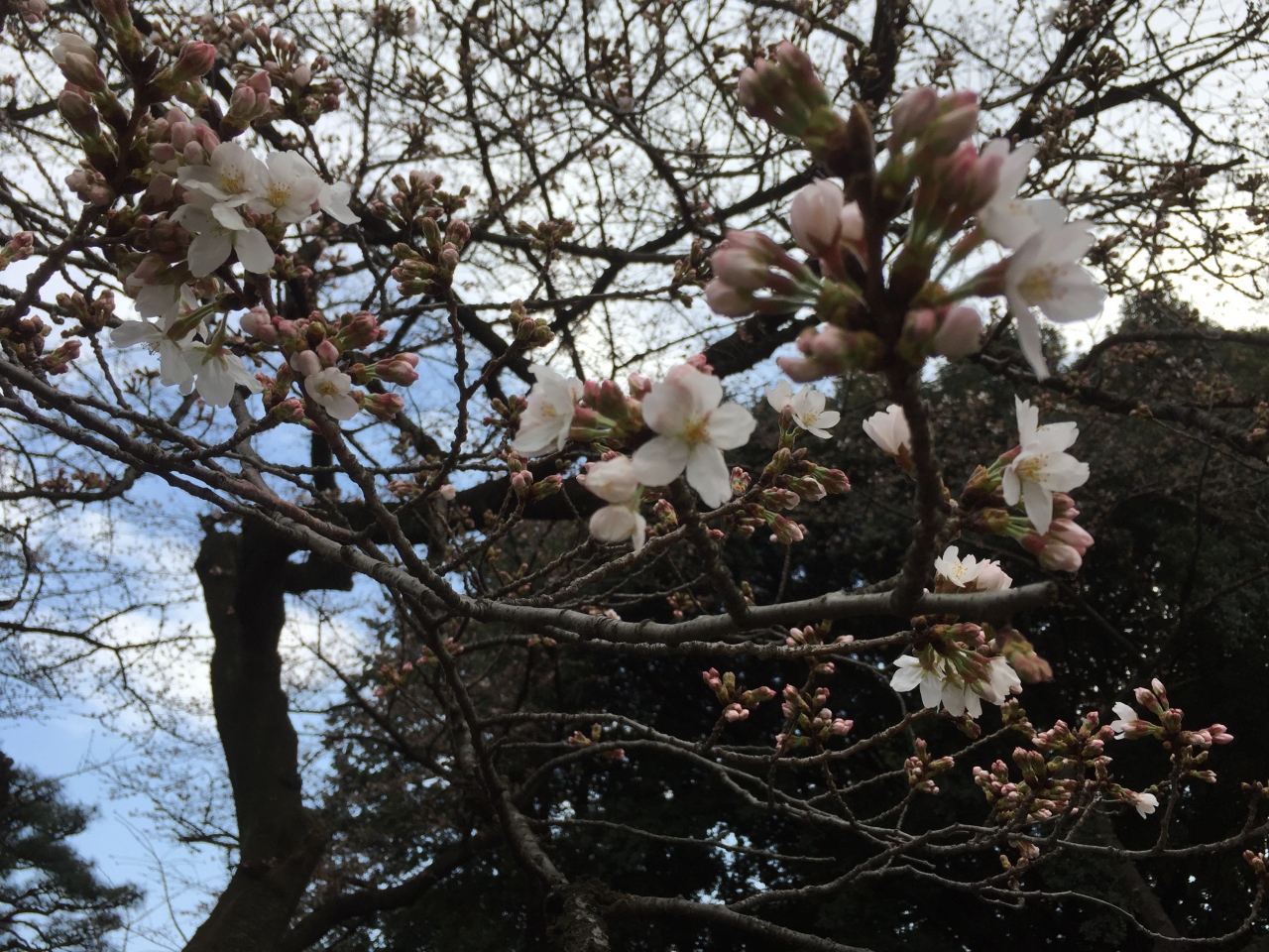 桜はピンクが濃い目の「陽光」が所々咲いているけれどソメイヨシノはもう一息。