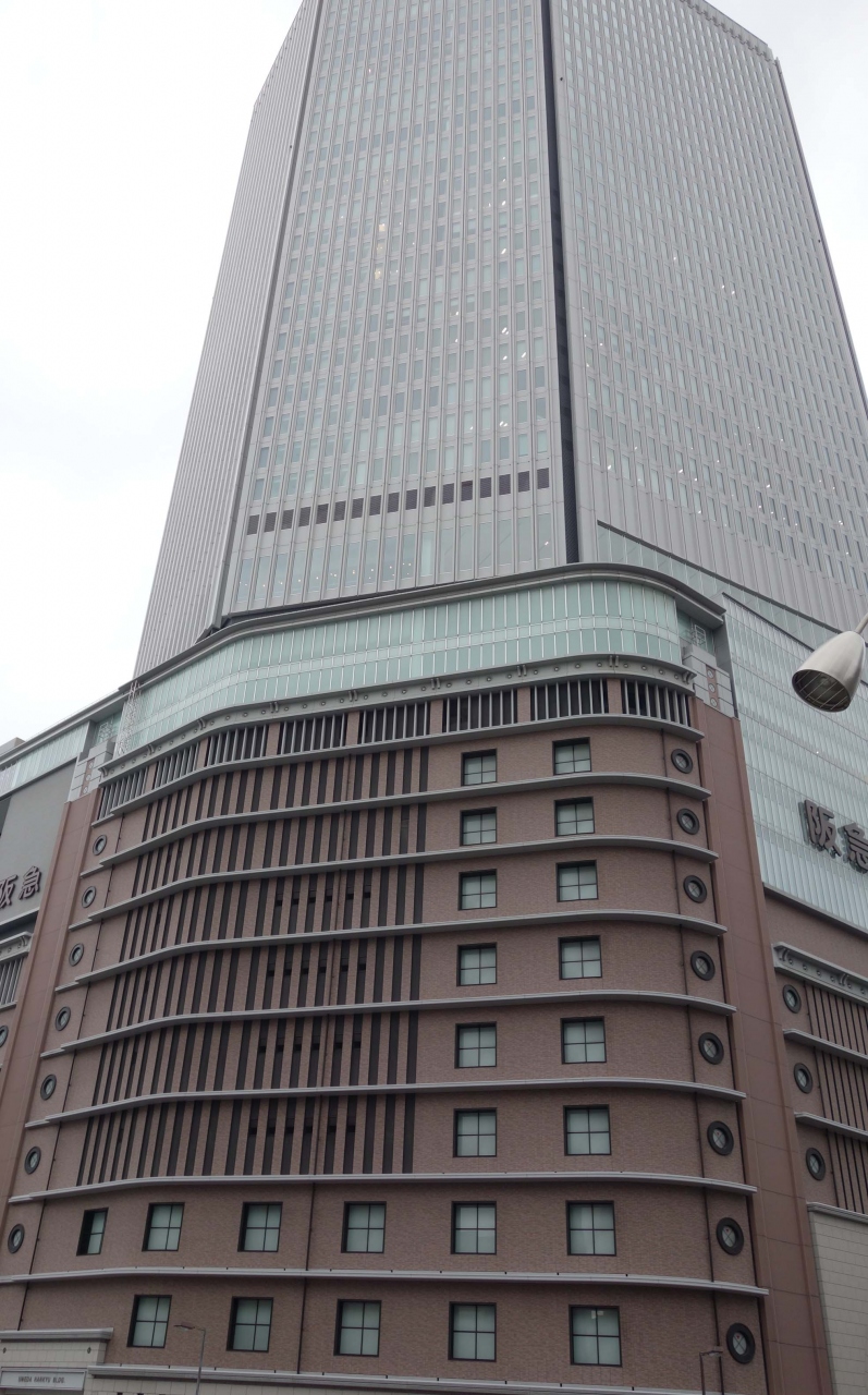 大阪梅田の一等地に建つ六面体のオフィスビル。低層階は阪急百貨店梅田本店でオフィス階より一足早く2009年にオープンしました。オフィス階は2012年オープン。デパートエリアとオフィスエリアを結ぶ15Fはスカイロビーとなっています。
