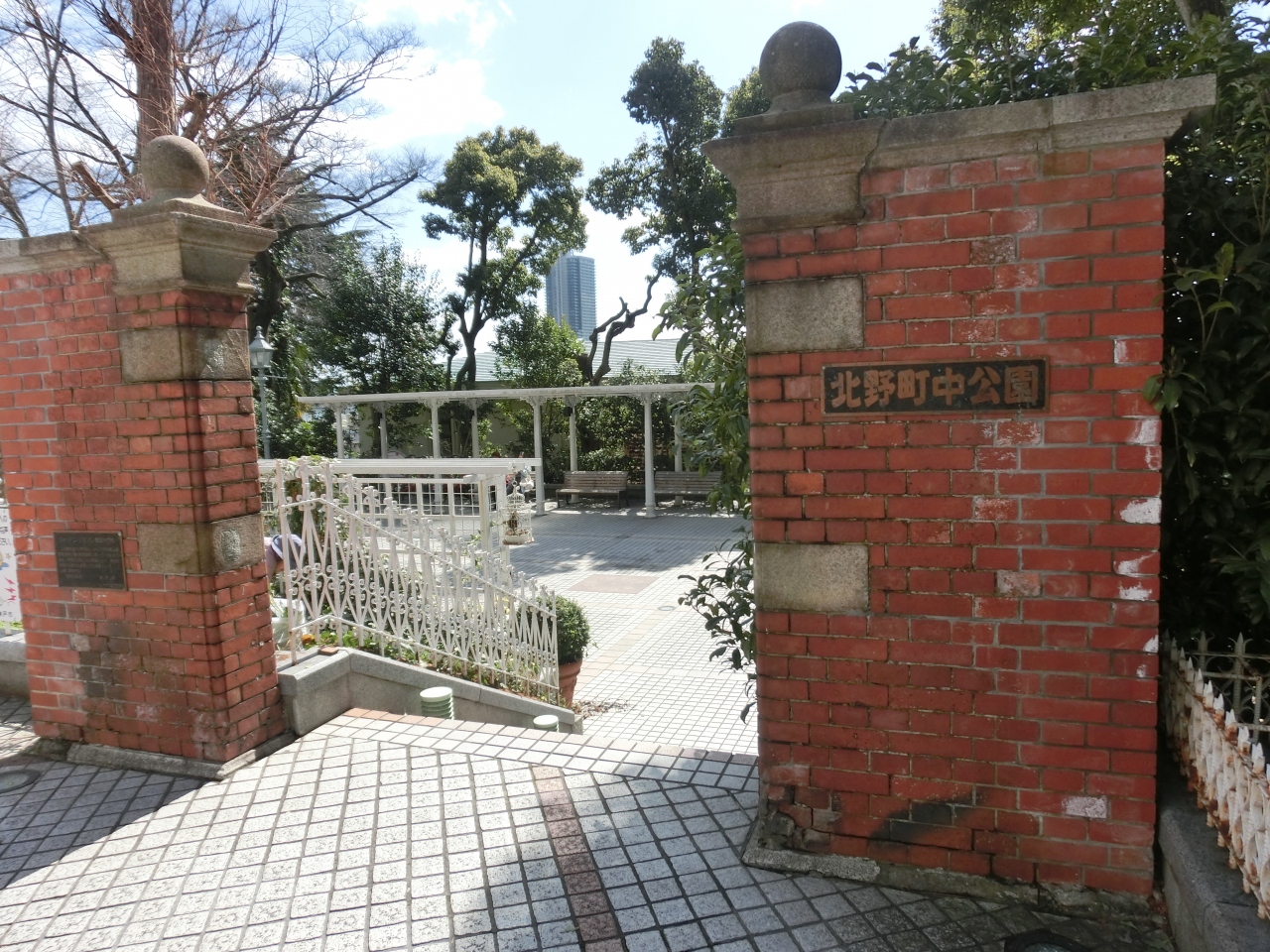 現在は北野町中公園入口に赤レンガの門柱が立っている。