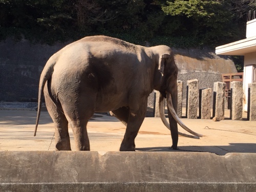 インド象はかなりの坂の上で、今度は孫が歩くのを拒否。