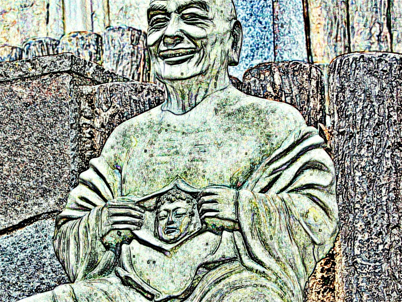 自分の体には仏が宿っていて清らかな心を持っていることを証明するために、自ら腹を切り開き、仏の姿を見せているということだ。