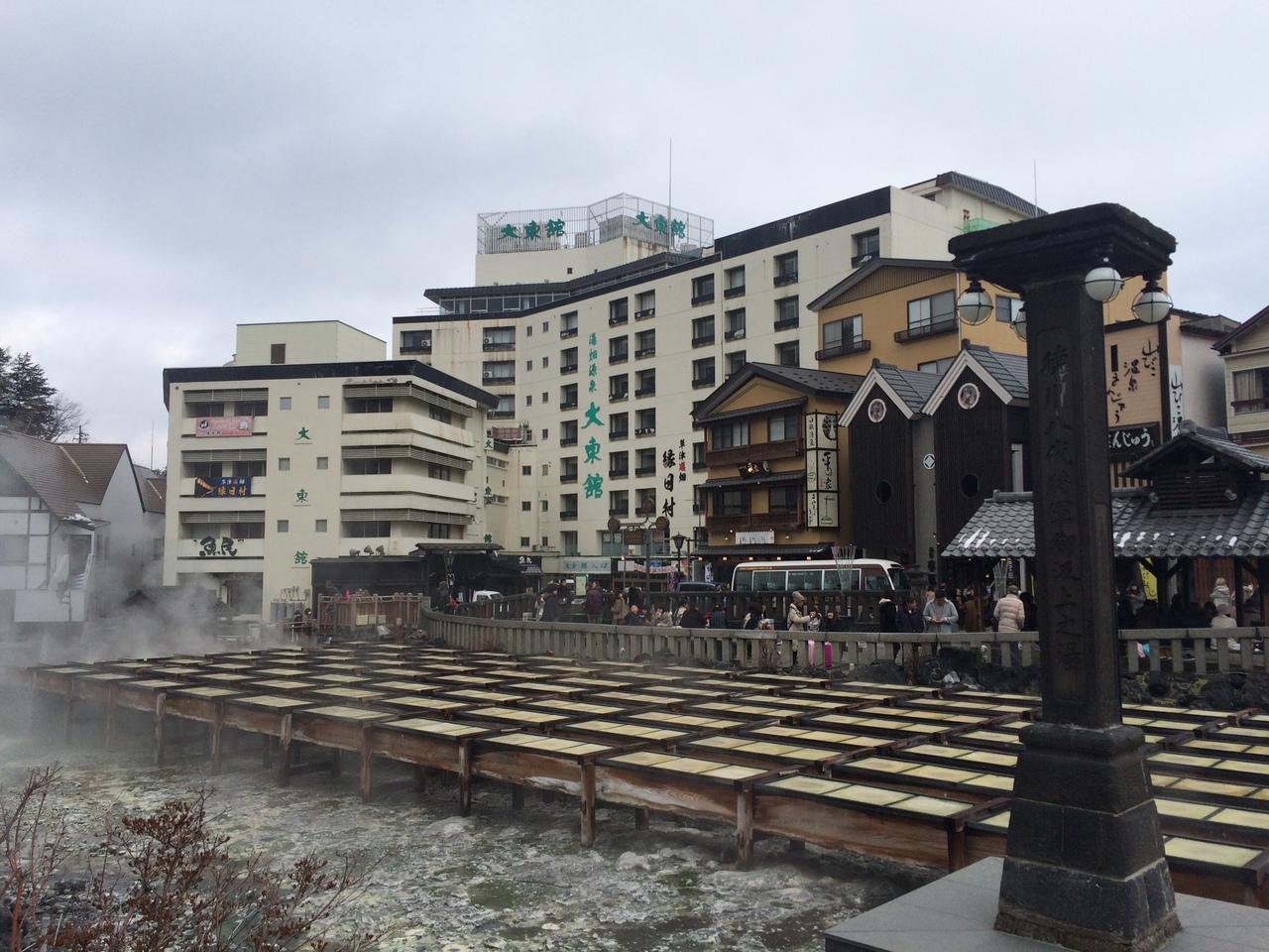草津温泉バスターミナルからも5分以内で着き、草津温泉温泉のシンボル的象徴です。温泉の湯気が立ち込め、周囲には足湯もあります。湯畑の周囲は遊歩道のようになっていてところどころにベンチもあり休みながら写真を撮りました。