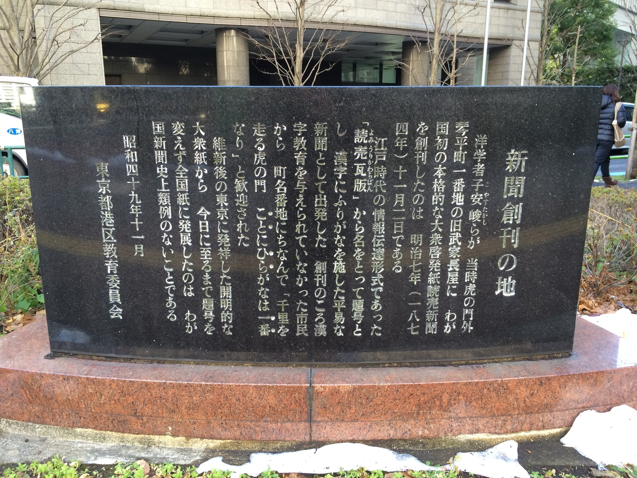 溜池山王駅から数分の場所に立っています。もともと江戸時代の読売瓦版から名前をとって始まり、現在に至るまで新聞という情報と文化の発信が行われています。その発祥の地がここの訳ですが、今から数十年後に『昔は新聞というものがあって…』なんていう文言に変わらないことを祈ってます…