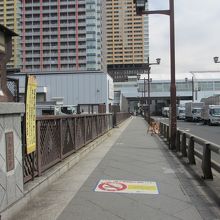JR日暮里駅・西日暮里側改札口を出た所に架かっている長さ100m、幅15mほどの橋です。橋にはバルコニー付きの歩道があり、歩道からは新幹線をはじめ、1日2500本ほどが走る各種列車を見渡すことができます。