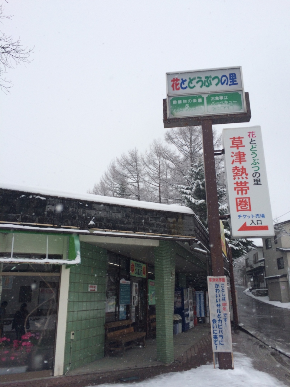 湯畑から徒歩で15分ぐらいです。入ると土産コーナーがあり、一旦外に出て1分ぐらい歩くと猿山があり、猿が数十匹います。その横に大きなドームがあり、ワニやフラミンゴ、蛇等を見る事が出来ます。ゆっくり廻ったので1時間以上見学しました。訪問時、雨・雪だったので観光客が多くいました。