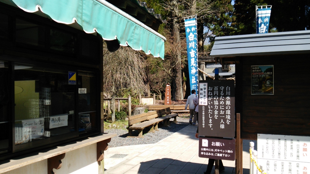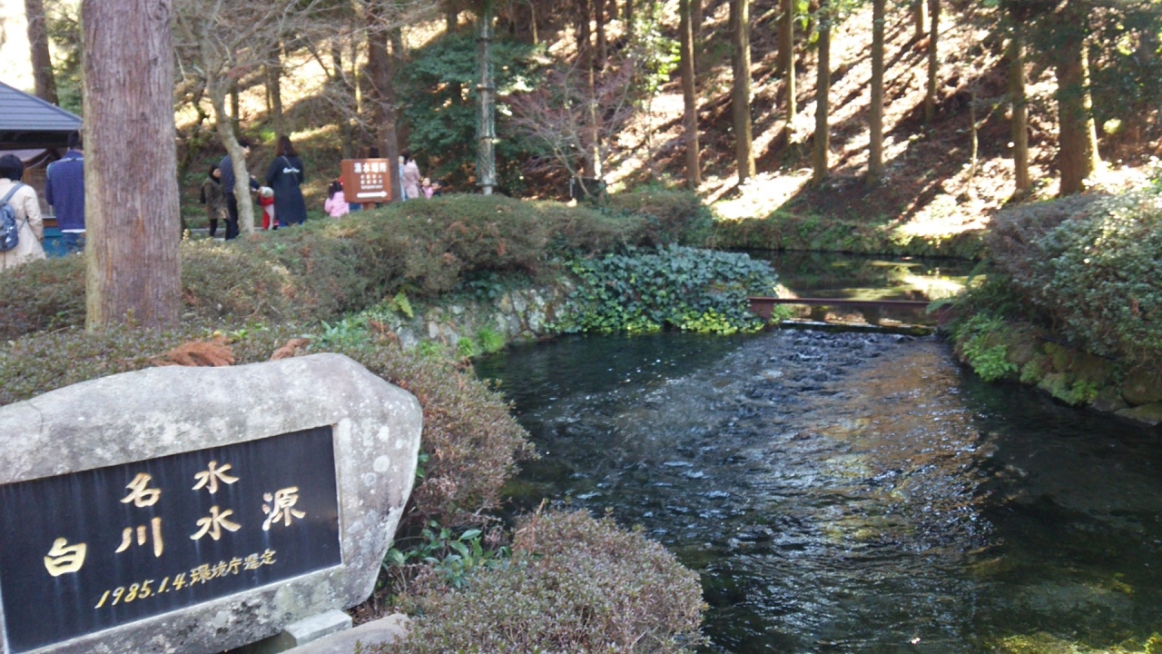 とてもきれいな湧き水が湧き出る、阿蘇の麓の中でも有名な水源ということで立ち寄りました。ミネラルウォーターの工場の脇も駐車場になっているようでしたが、観光客で半分以上埋まっていました。空のペットボトルを売っているお土産物屋を過ぎると、寄付金(実質的にはほぼ強制)100円を徴収する入口があり、中に入ると正面に神社、右側に湧水の池があります。非常に透明度が高い水で、底から水が湧き出ているのが見えます。週末に行きましたが、観光客は非常に多く、混雑していました。