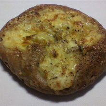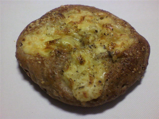 ほんのりむらさき色の生地はクルミ入り。その生地の上に、小さくカットされた里芋が入ったベシャメルソースがたっぷりとのり、チーズがかかって焼かれていました。カリッとした生地と里芋のねっとりした味わいがとても合います。