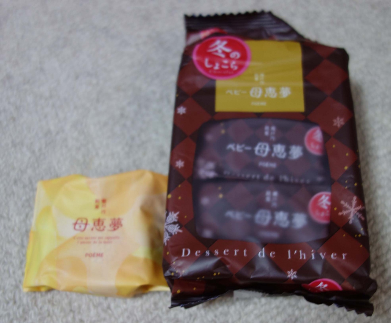 いよてつ高島屋などでも見ました。松山・道後ではポピュラーなお菓子の様ですが本店は今治らしいですね。道後温泉前商店街の中のお店はレトロな感じがとても素敵でした。オリジナルの母恵夢の他に季節限定のショコラも購入しました。