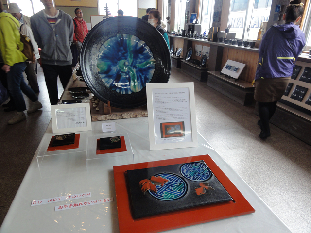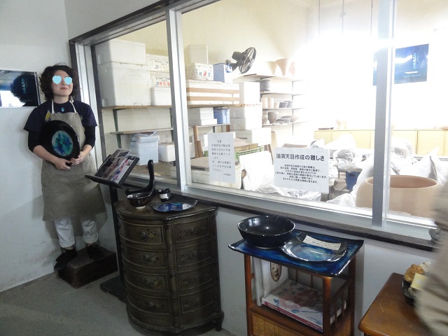 ツアーで案内された焼き物工房です。黒い磁器とガラスが融合した陶器で、焼いてるうちに割れることが多く製品として残るものは少なく、それゆえ高価と説明してくれました。ペンダントヘッドから食器、飾り皿まで目の保養になりました。