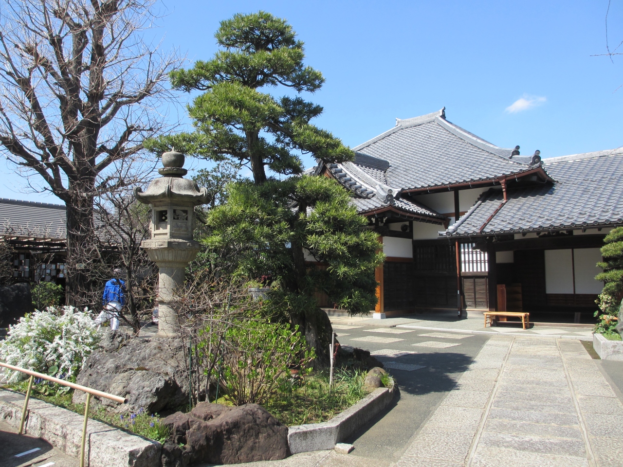 JR鶯谷駅から5分ほどの、うぐいす通り沿いにある400年以上の歴史を持つ寺です。境内にはボケ、椿、梅など10種類ほどの花が手入れされ、美しく咲いていました。後で調べたところ、下町の花のお寺と呼ばれているそうです。納得です。
