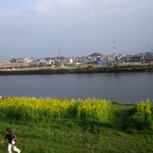 鶴見川沿いに咲く菜の花が満開であると聞き、訪れてみました。鶴見川は東急東横線と直角に交わるように流れており、東横線だと綱島が最寄駅。やや予想よりこじんまりとした菜の花でしたが確かにきれいに咲いていました。