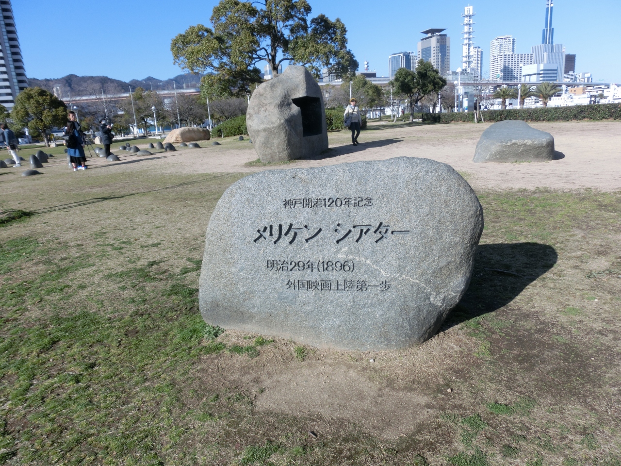 1896年(明治29年)、日本初の外国映画が、神戸市内で上映されたこと、後に、来日したチャップリンが神戸に訪れた時この場所に上陸したことを記念して、1987年に作られた記念碑がたっている。