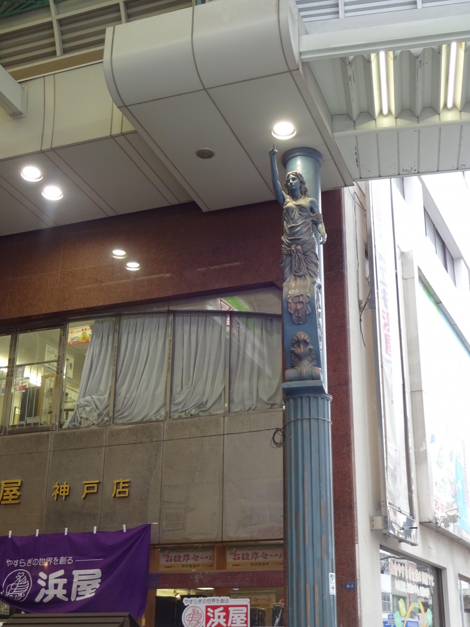神戸、元町商店街のちょうど中間、4丁目の交差点の角に女神はいる。