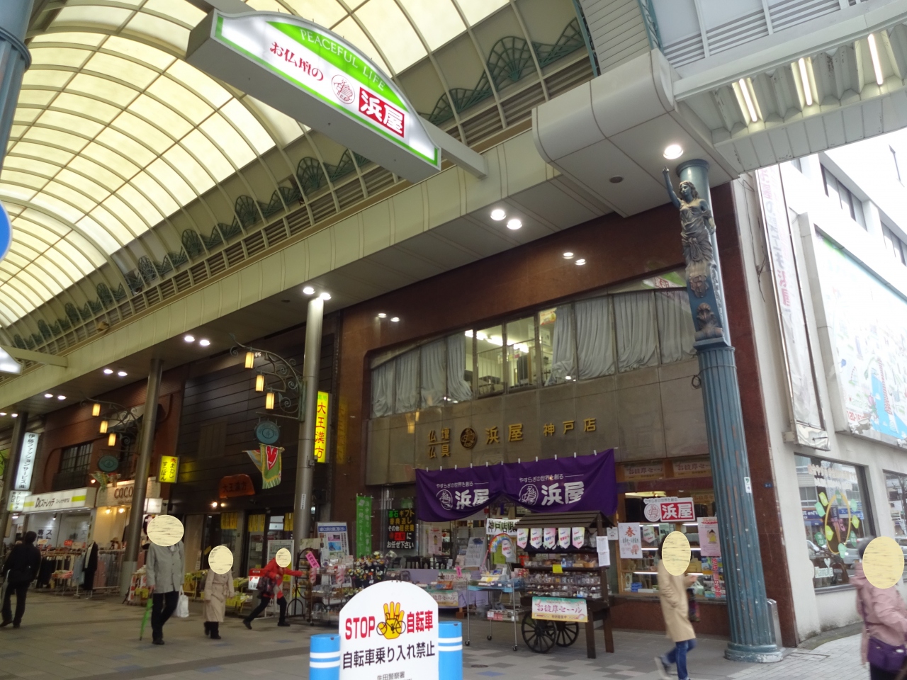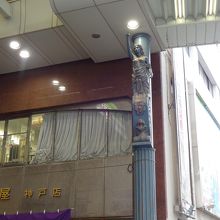 仏具屋さんの「浜屋」の前のポールの上なので、ちょっと気づきにくいですが、見上げて下さい。