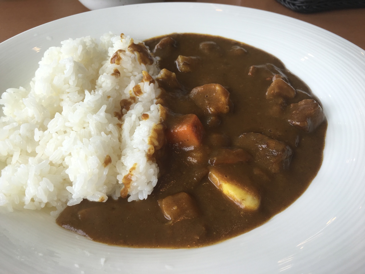 よこすかグルメきっぷで利用できるレストランということで行きました。よこすか海軍カレー、サラダ、牛乳、ポテトチップスです。カレーはスパイスがきいていて濃厚。ロケーションもよく、目の前で海が見渡せるのできれいです。