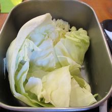 でっかいアルマイトのお弁当箱みたいな容器に入った、キャベツがインパクトがありました・・・。
