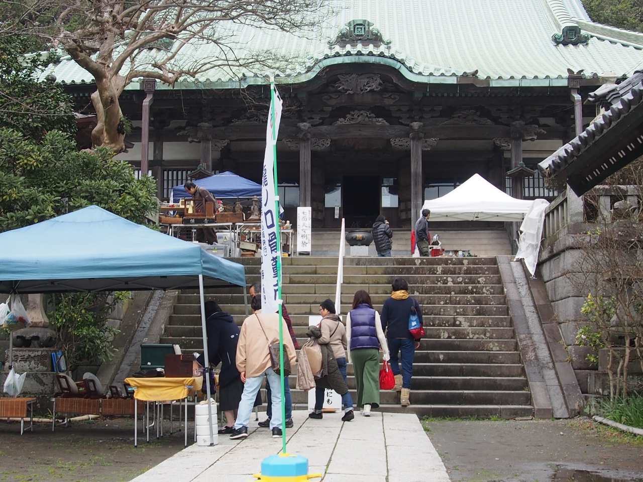 江ノ電から五重塔が見えたので訪れてみました。江の島方面ばかりに目を取られて山側にこんなに立派な塔があるなんて露しらず。もっともこの塔は明治時代に造られた比較的新しいもののようです。訪れた日は寺内には古物の出店がいっぱいでした。寺院の前は江ノ電の撮影スポッととして面白いかも。