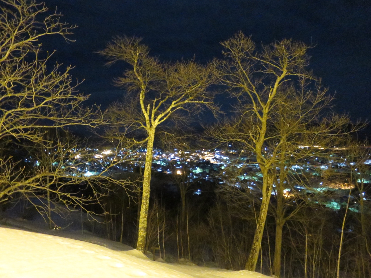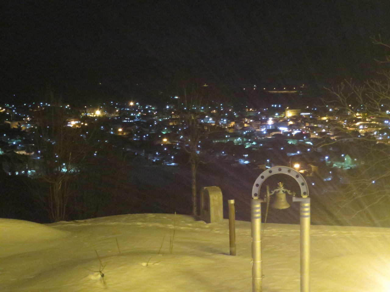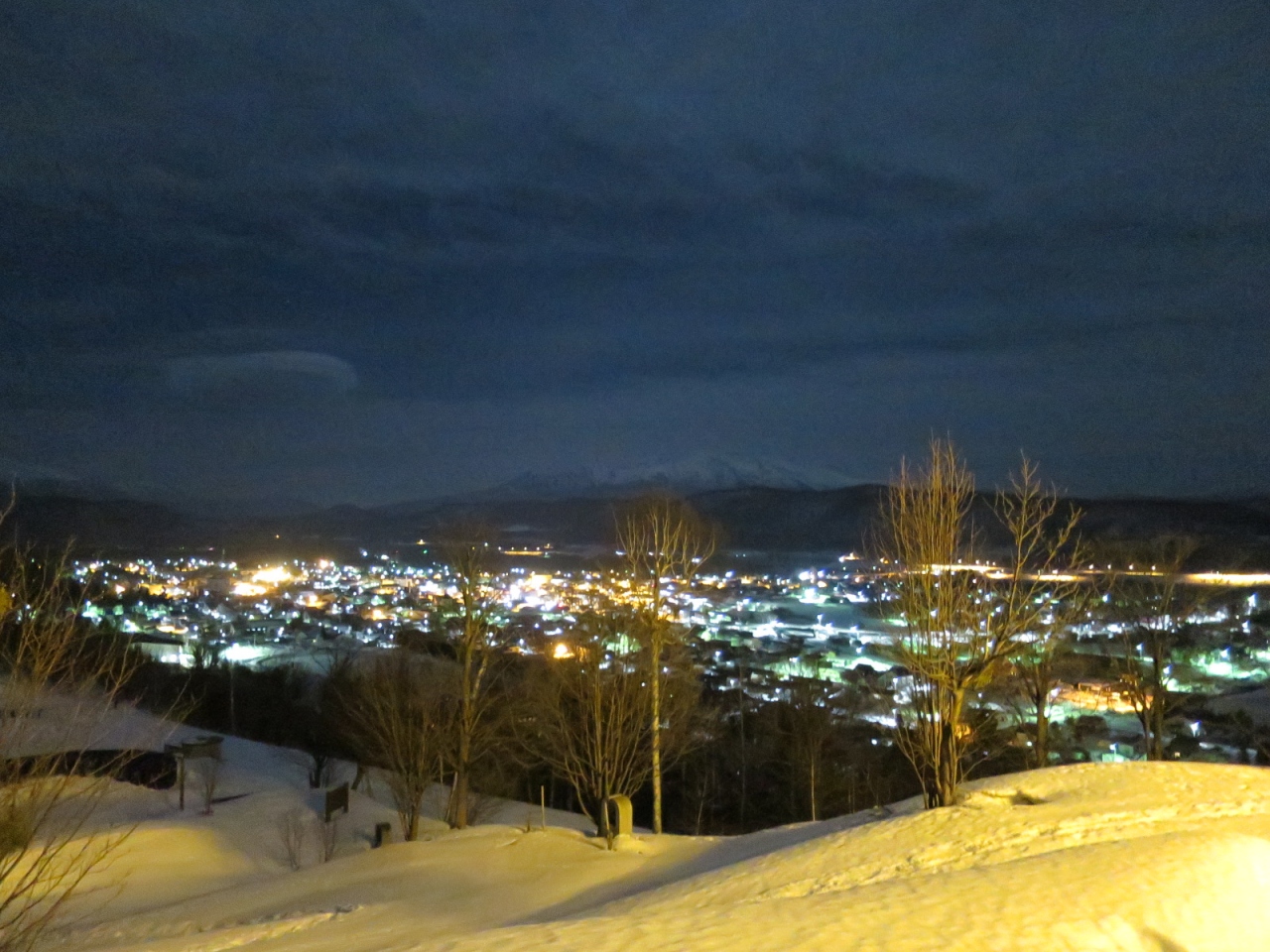 丘の上から宝石を散りばめたような上川の街の夜景と、展望台のライトアップを間近で楽しむことができました。