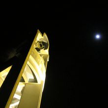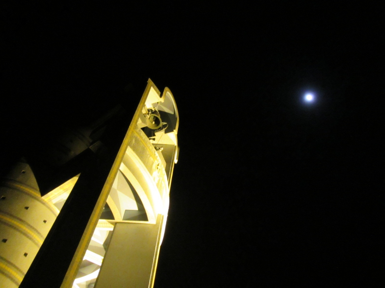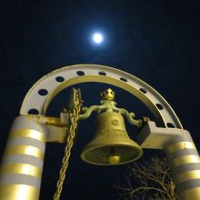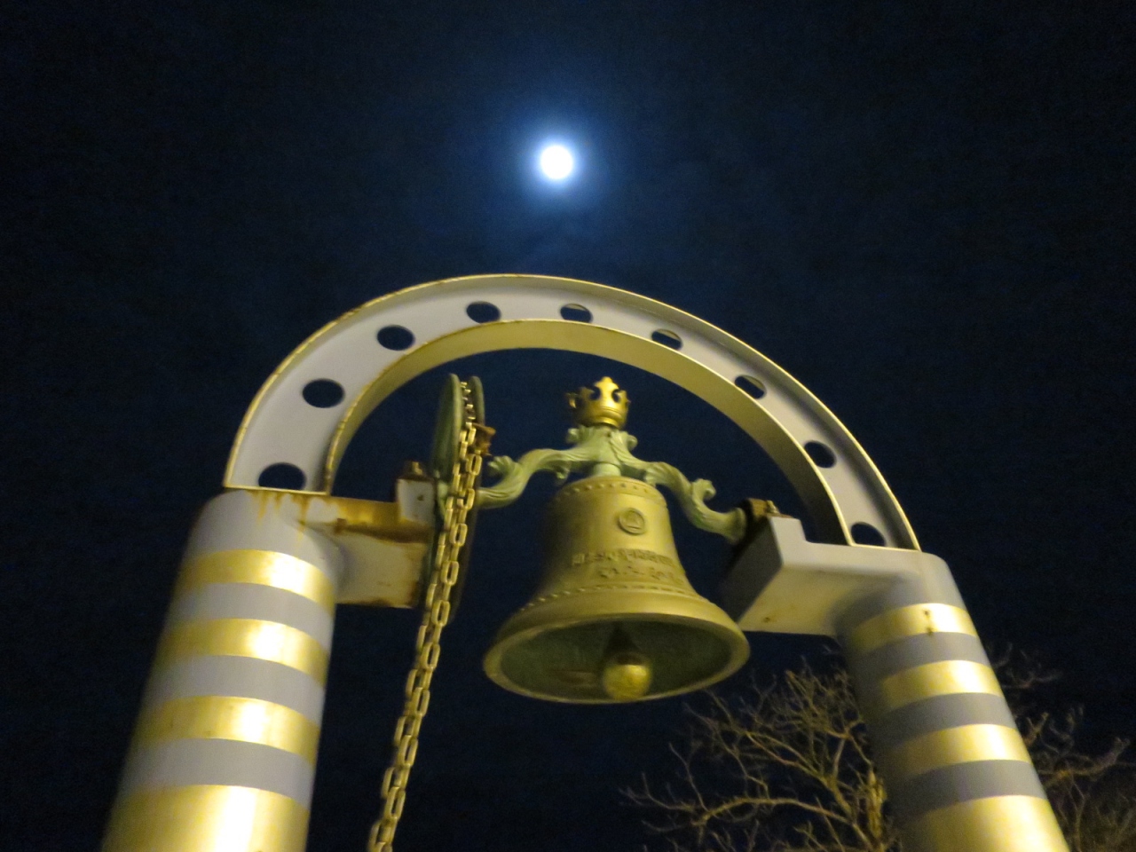 人気のない公園は、ちょっと薄気味悪いですが、月の光とライトアップされた鐘の光を頼りに行ってみることにしました。