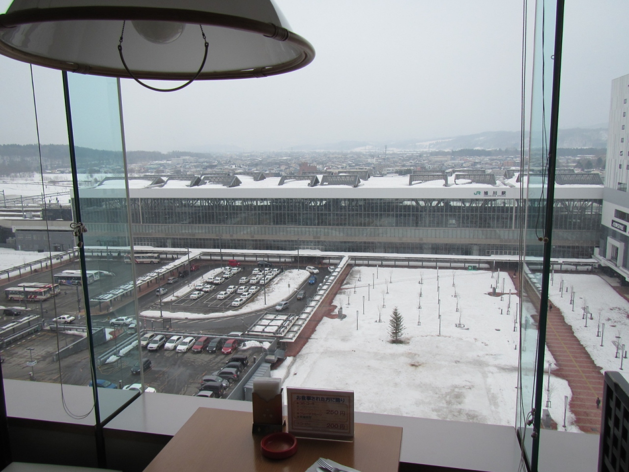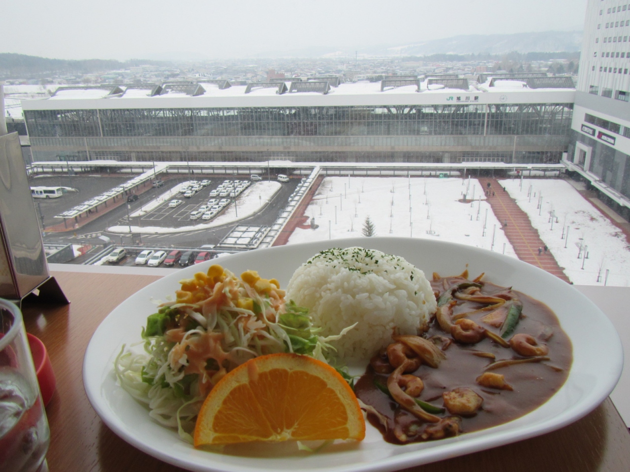 旭川駅近くで景色を見ながら食事をするには、手軽で景色も良いレストランです。