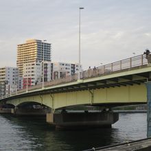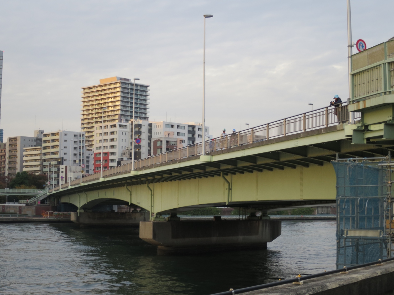 隅田川に架かる築地と佃島・月島を結ぶ大きな橋です。佃島観光したあとに通りました。丁度夕刻になり橋の上からは隅田川の向こうに沈む夕日が良く見えました。また、この橋から勝鬨橋を見ると、その先に新しく掛けられた橋のアーチが丁度3連に見ることが出来ます。