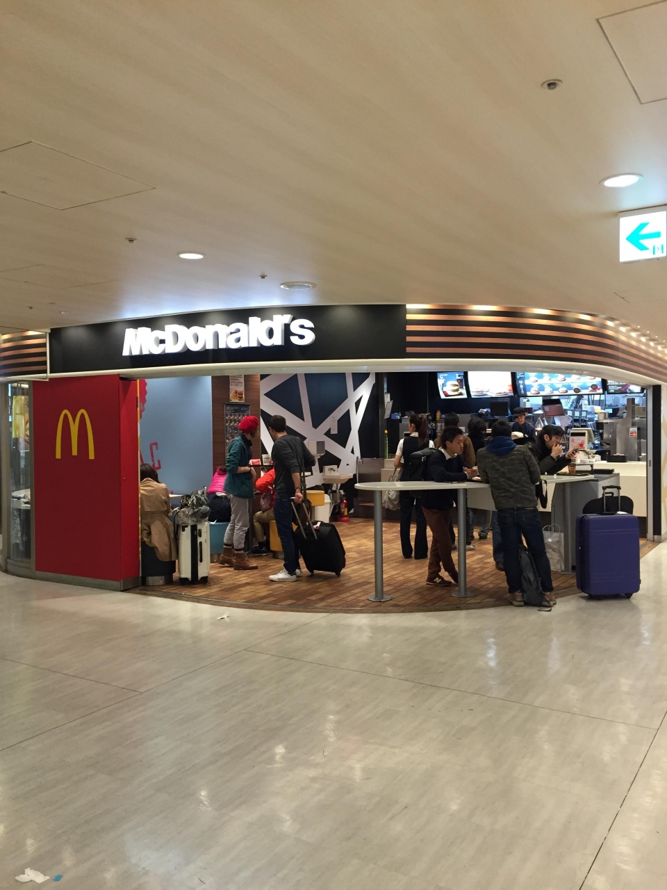 成田空港にはずいぶん前からマックがありました。そのマックを訪れたのは久しぶりです。店舗の雰囲気がちょっと違っているように思いました。リニューアルでもしたんでしょう。でも狭さは変わりません。元々狭い店舗でしたが、更に狭くなったような。錯覚でしょうか。イートインはちょっとの席と後は立食スタイル。混雑時はここで食べるのが難しいのでテイクアウトしてどこかの椅子で食べたほうが良いと思います。
