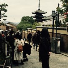 聖徳太子が建てたと言われるこのお寺は、すごく境内が狭く、やはり見るなら手前の坂(八坂の坂)からがベスト。