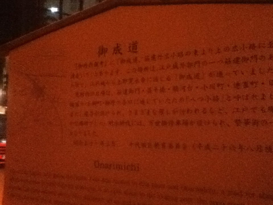 JR秋葉原の南西、マーチエキュート神田万世橋前南側の道路にこちらの立札がある。立札は新しいが、JRのレンガ側でなく、車道寄りの歩道に立っている為、わかりにくい。平日夕方、前の歩道は人が行き来していたが、こちらの立札を見ている人はいなかった。御成道は筋違外広小路の東から上野広小路に至るの道で、将軍が上野の寛永寺に墓参のため、江戸城から神田橋を渡り、この道を通ったことからこの名前がついた。江戸時代やこの界隈に関心や知識のある方は訪問するのもいいかもしれない。