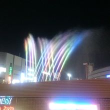 夕食後地上に出ると、ちょうど噴水が上がっていました。