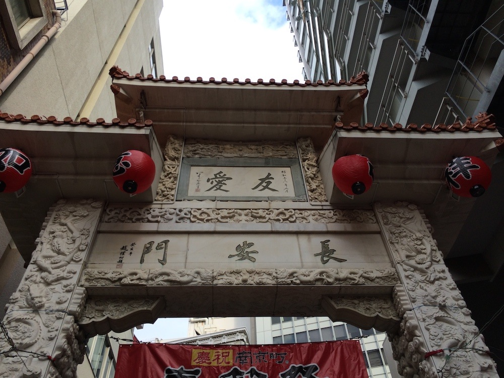 神戸の中華街こと南京町の大丸側の入り口にある門です。立派な揮毫もしてあるので、記念撮影にも向いています。隣は東急REIホテルやエクセルシオールカフェもあるので、非常にわかりやすい場所です。隣りにある中国語とパンダが書いてあるコカ・コーラ社の自動販売機はもはや名物になっています。
