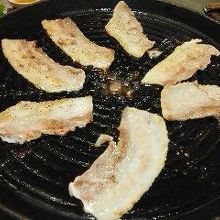 分厚いサムギョプサルがたまらない。