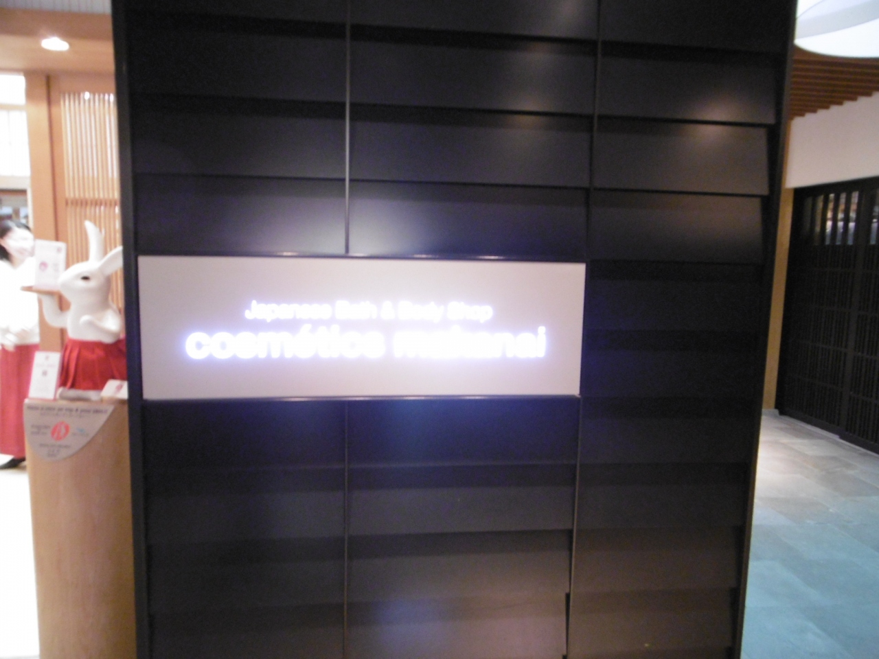 「まかないこすめ (羽田空港国際線店)」は石川県金沢市の金箔屋から生まれた自然派化粧品の店だった。餅をついてるうさぎがマークになっており、日本らしいもの。アジアの観光客、若い女性たちが真剣に品定めしていた。