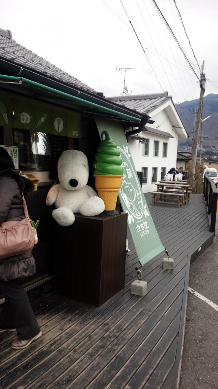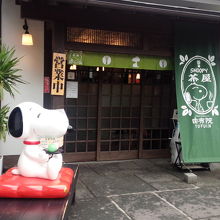 食事やデザートが食べれる茶屋部分と和風のスヌーピーグッズなどが売っている店舗、外でソフトクリームを買える所がありました。ランチは別の所で予約済みだったので茶屋には入っていませんが、抹茶ソフトは美味しかったです。和風のスヌーピーグッズはとても可愛かったです。