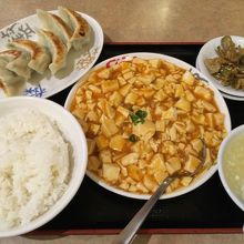 麻婆豆腐と餃子のセットを注文。かなりの量です。