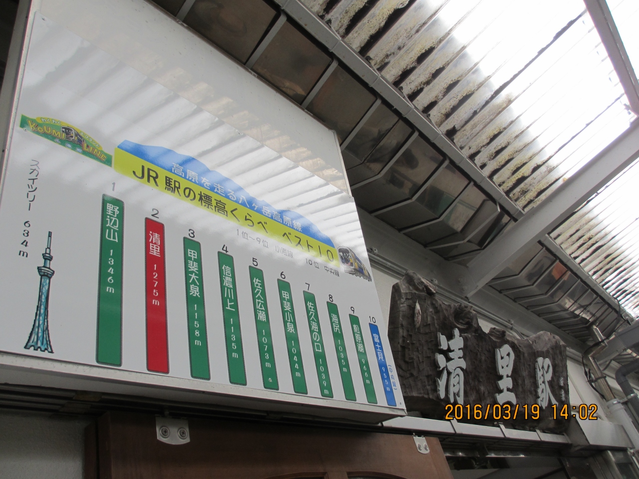 小海線の野辺山駅から清里駅まで電車に乗る。