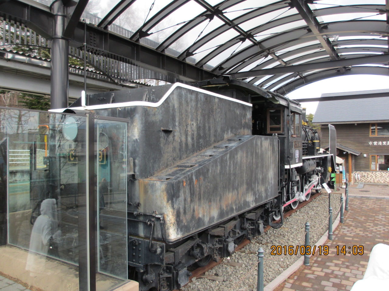 ホームからもSL の展示が分かる。
