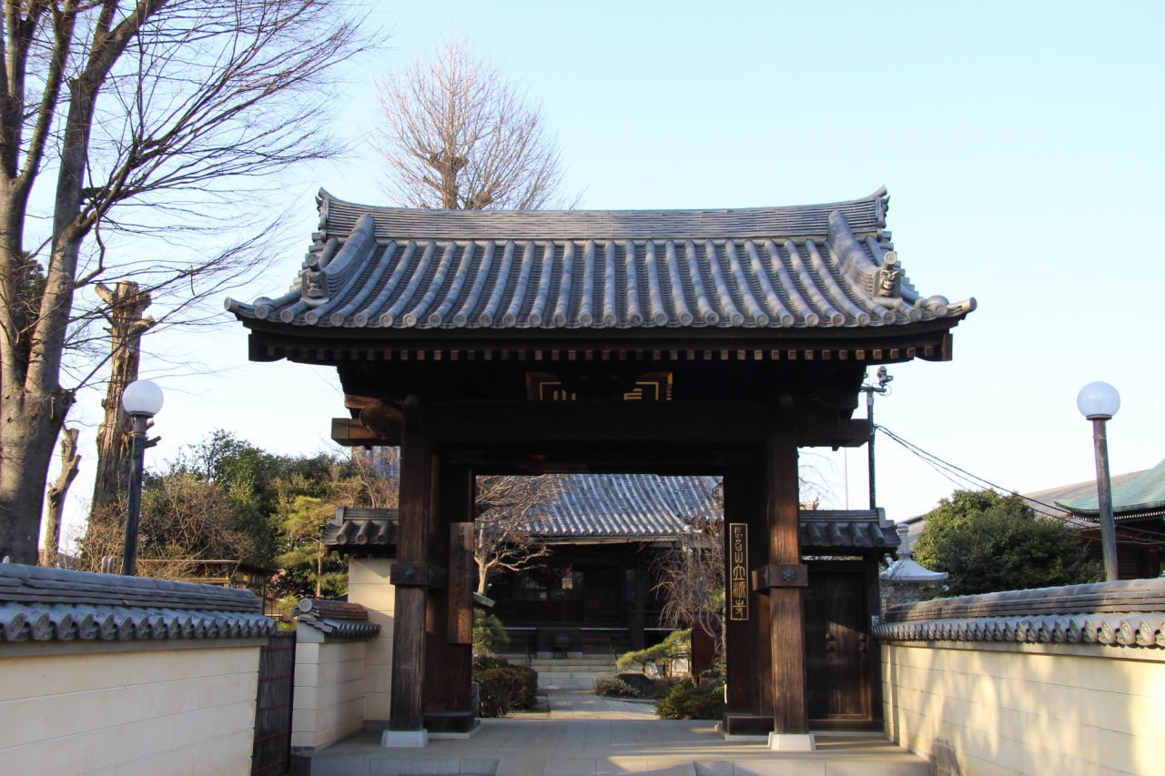 東急東横線都立大学駅から歩いて10分程のところにあります。寺郷の坂の上にありこの辺りは尾根になっていて近くに東横線の踏切があります(東横線はほとんど高架なので踏切は珍しい)。立派な山門をくぐるとすぐ本堂があります。境内はさほど広くありません。