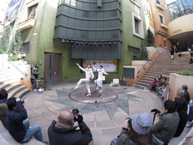 「噴水広場」ではミニライブなどが行われることが多く、今回は「かわさき・シネマ大道芸フェスティバル」を見学しました。