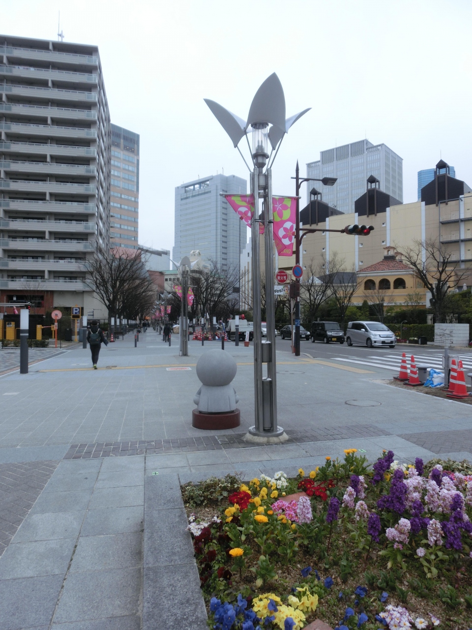 しゃれた遊歩道も、アンパンマンの置物が並び、安っぽく見える