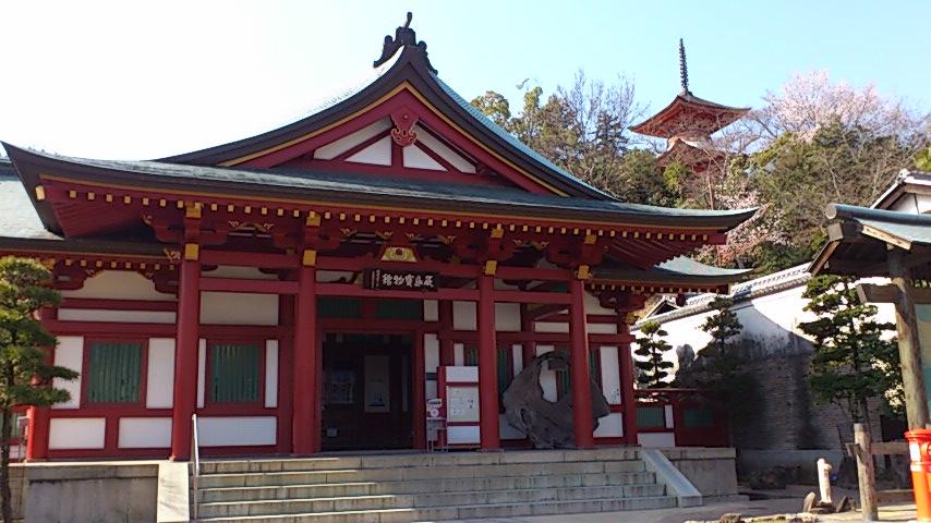 厳島神社を出たところにあります。入場料が300円必要です。平家納経のレプリカが置いてあります。宝物館は大したものでないものが多いですが、この宝物館は神社本体の入場料と同じ金額を徴収する割には、がっかりしたものしか置いてありません。宮島観光ルートでパスしても良いと思います。