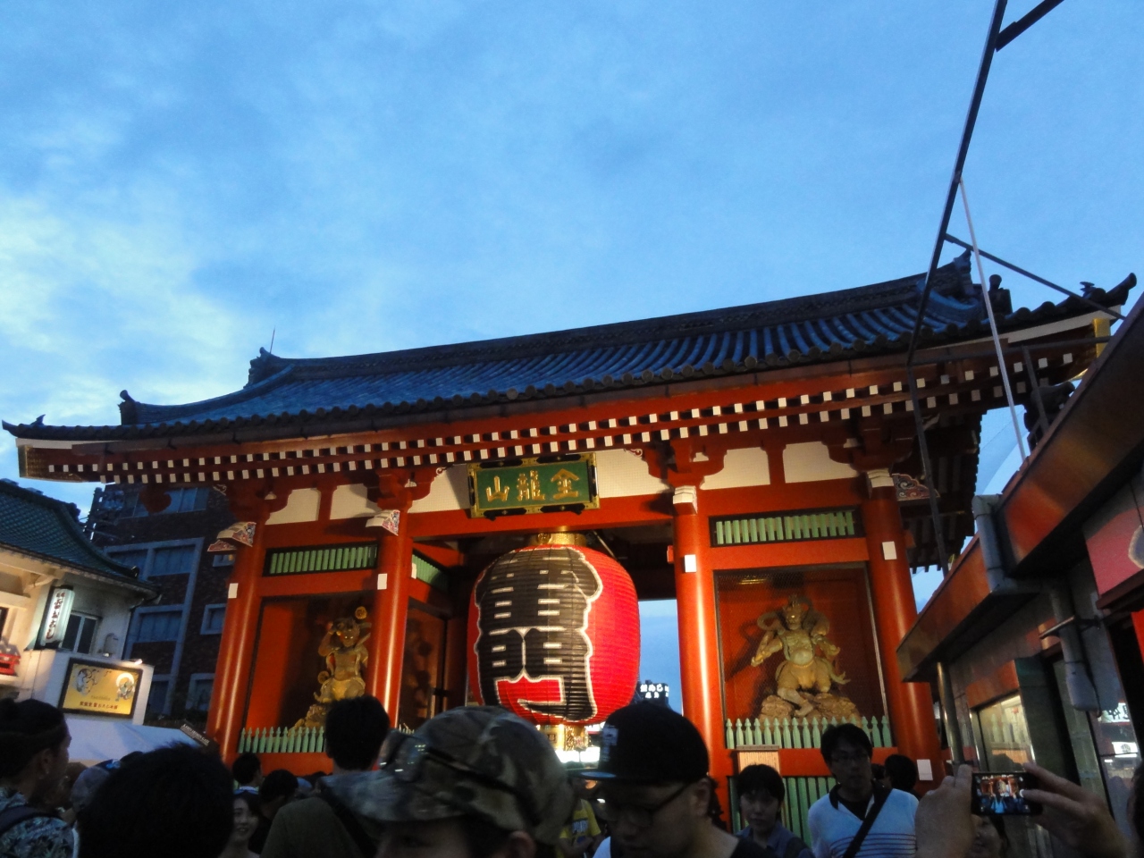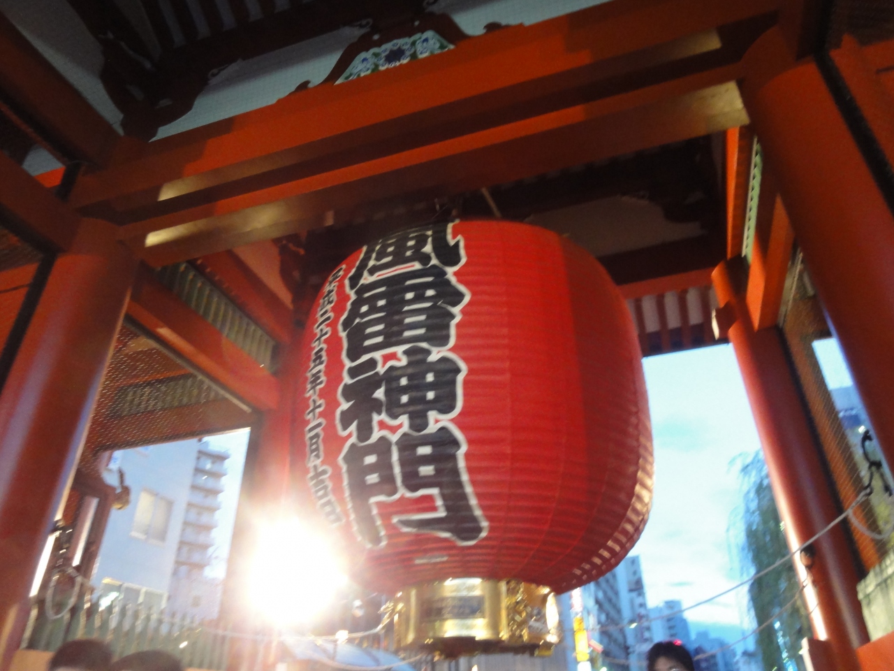 浅草寺の山門。正式名称は「風神雷神門」。 門に向かって、右側が風神、左側が雷神。門の中央には、重さ約700Kgの大きな提灯が吊りさげられていて、浅草のシンボルになっている。30年位前から毎年のように見ているが、いつ行っても人が多い日本のランドマーク。
