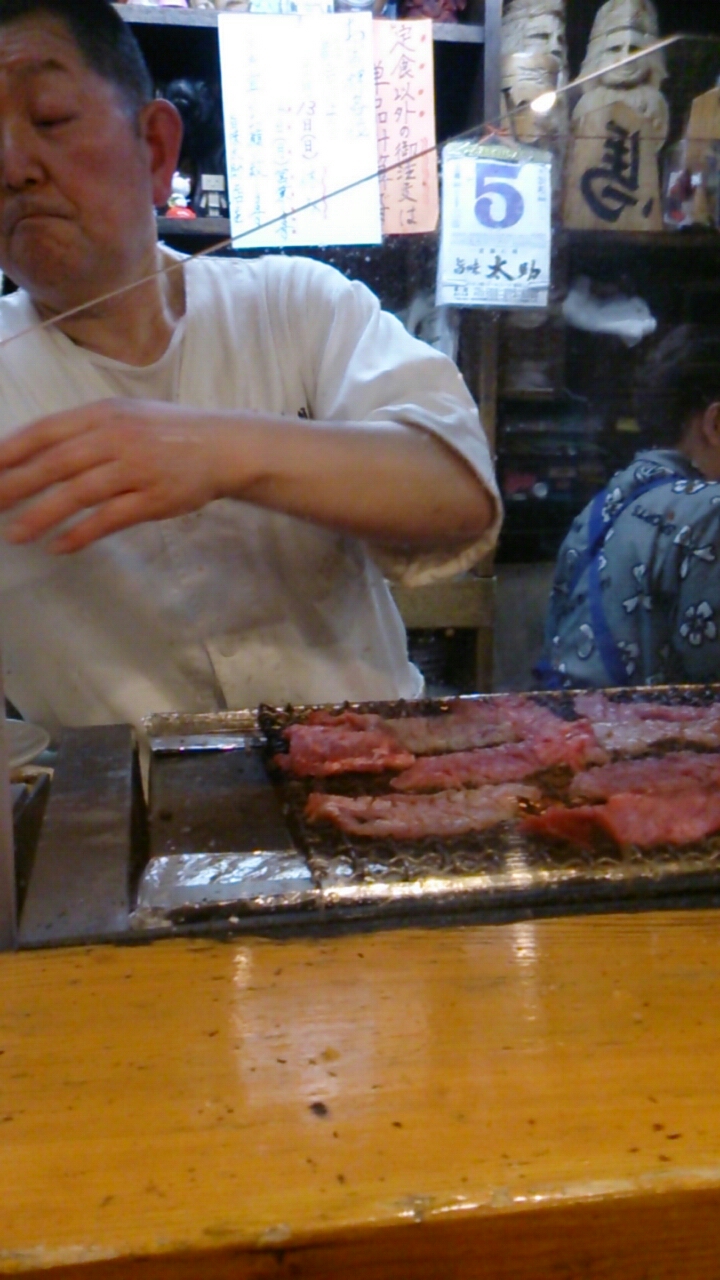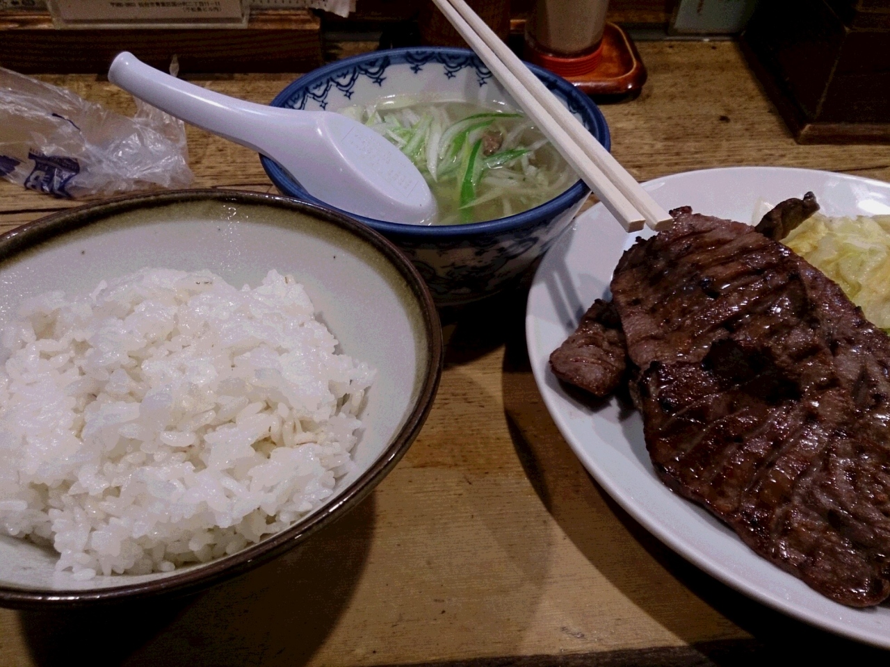 たぶん仙台の飲食店街なのかな?そこにある牛タン専門店です。ナビで調べて行きました。昭和23年に「太助」初代、佐野啓四郎さんが仙台市内で牛タン焼き専門店を開いたのが最初とされています。つまり元祖。店内は、地元の人や観光客で大混雑していましたが、運よくカウンターぬ座ることができました。目の前で焼かれる牛タン。牛タン定食、1、5人前を注文しました。焼き加減、塩加減が絶妙で感激です。長ネギたっぷりのテールスープもおいしく大満足です。常連と思われる客は、注文時に「南蛮味噌」の追加を頼んでいました。通は「南蛮味噌」を頼むのか…。次は「南蛮味噌」を追加しようと思いました。