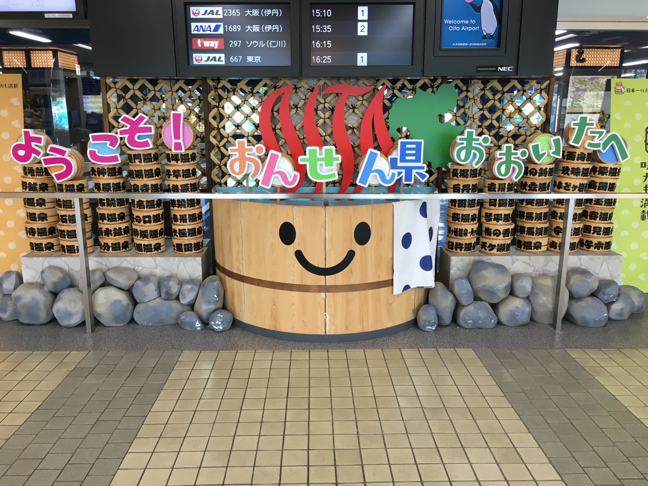 出張で伊丹空港から到着しました。本当は中部空港から移動したかったのですが朝夕の2便しかなく便数の多い伊丹空港からの利用にしました。羽田空港からの便も多いので中部空港便も増やして欲しいです。空港は至って普通の地方空港で温泉県をアピールしていました。