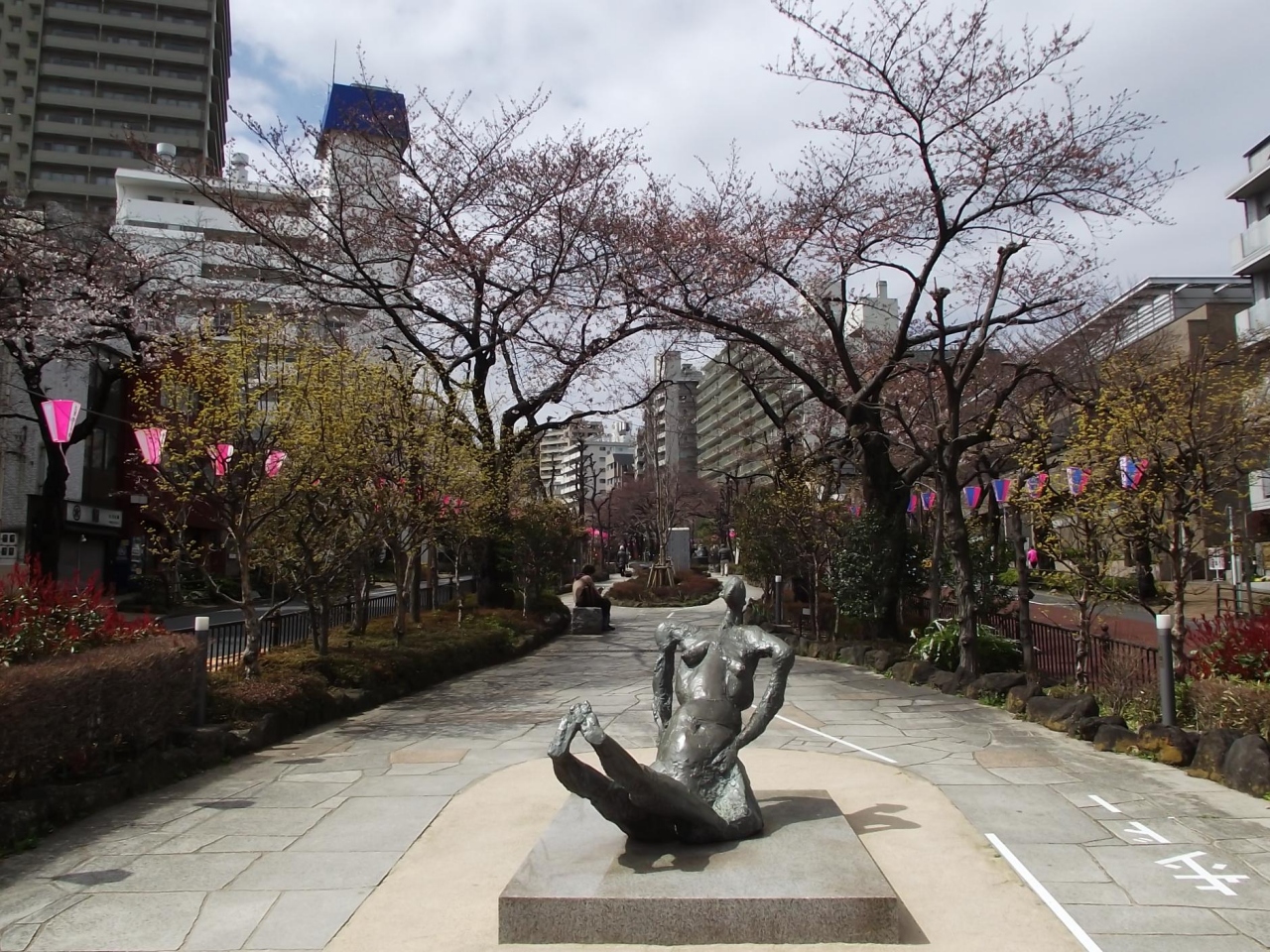 遊歩道は、ほぼ西 (春日通り) 側の洋風ゾーンと、ほぼ東 (千川通り) 側の和風ゾーンに分かれており、せせらぎ沿いの水辺の散歩道や彫刻などもあります。