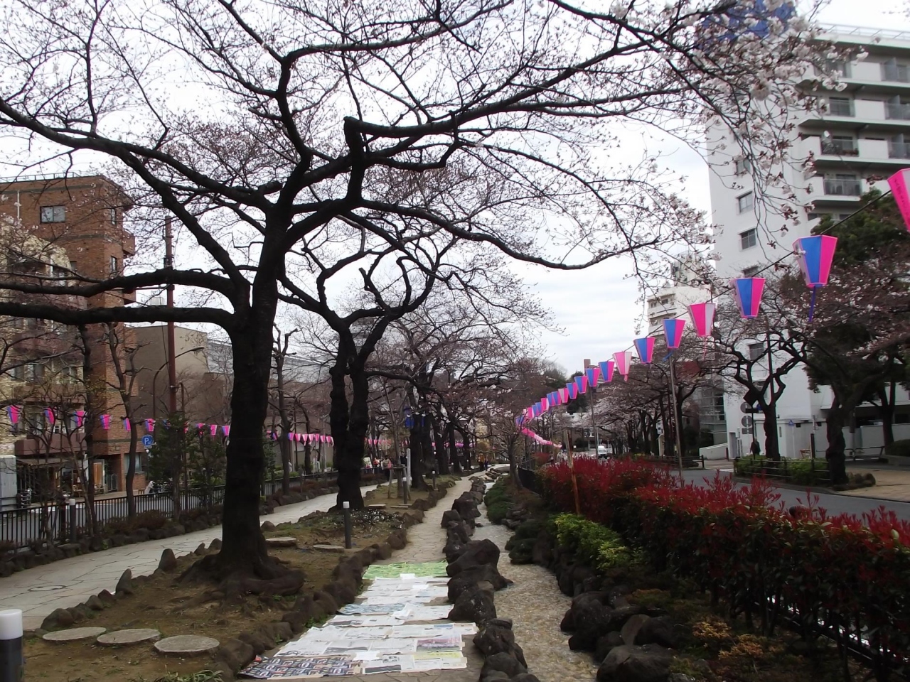 ほぼ東から西に上るこの坂は、全長500m位のところに130本弱の大きな桜の木が3列位並ぶと言う素晴らしいところです。